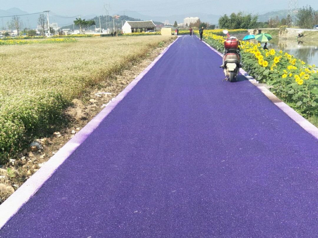 目前彩色瀝青路面采用的顏料有:紅、黃、棕、橙、綠色等等,可自由選擇;而且色彩艷麗持久,改變了原來傳統路面的面貌,即使集料被磨損也不會退色。